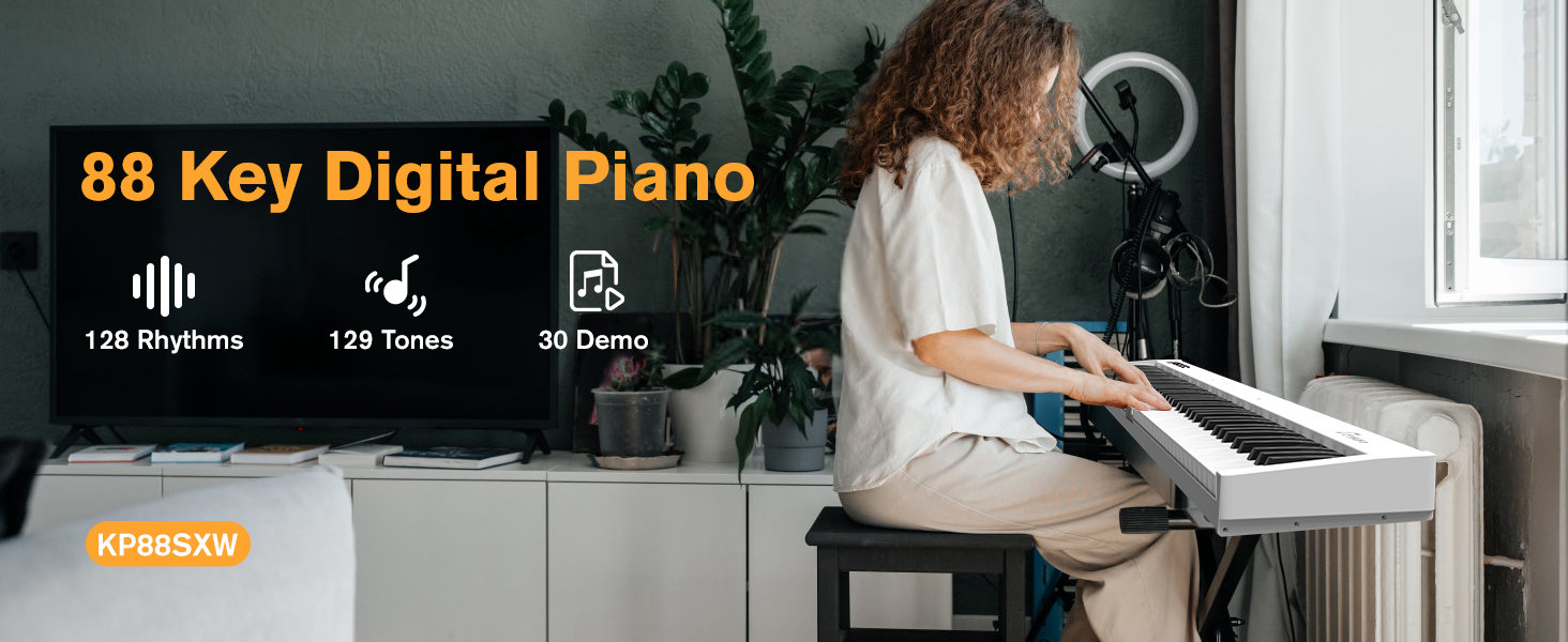 - [Best Beginner Keyboard Piano]: The portable keyboard piano adopt 88 full size semi-weighted touch sensitive key, which can aid beginners in developing better finger strength and control. The touch response feature allows the keys to dynamically respond to the strength of your playing, resulting in a more expressive performance. The piano keyboard delivers a realistic feel and an expressive playing experience, making it an ideal choice for beginners.