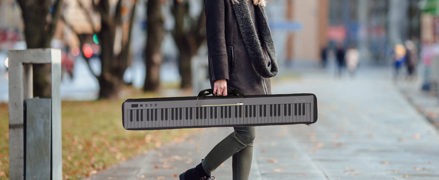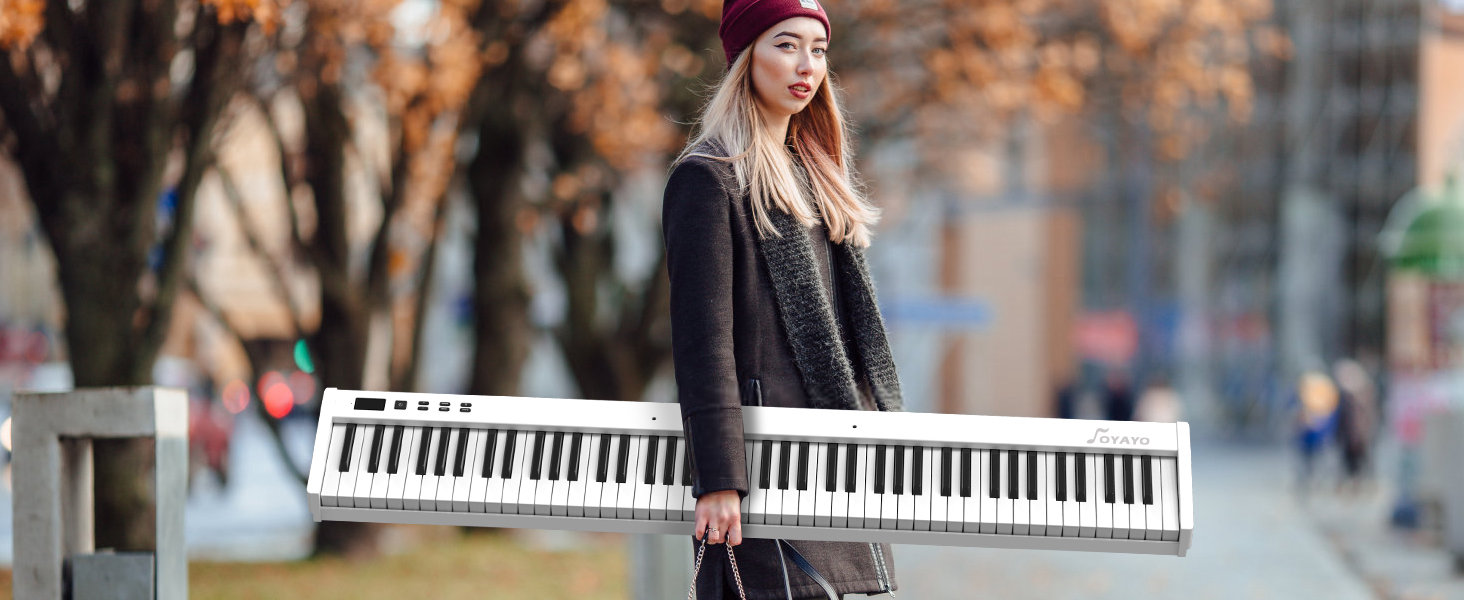 - [Portable Piano Keyboard] The OYAYO piano keyboard is designed to be the ultra-compact and lightweight, making it the perfect companion for musicians on the go. Measuring just 48.8x8.3 inches and weighing a mere 11 pounds. Whether you're getting ready for a performance or need to bring your keyboard to class, ensures you won't be weighed down by its size or weight.
